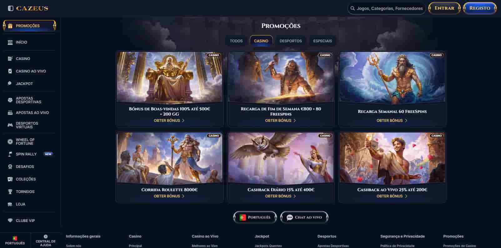 Para quem pretende usar o Cazeus casino a dinheiro real, o melhor é ativar apenas as promoções que fazem sentido para o seu estilo. Em alguns casos, jogar sem bónus pode dar mais liberdade de levantamento; em outros, as free spins ajudam a explorar slots com menor risco inicial.