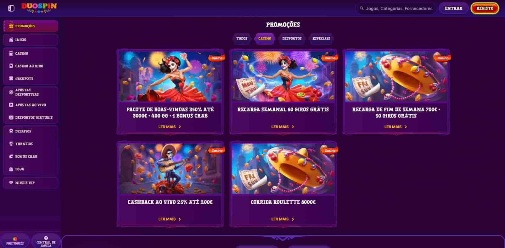 O online casino DuoSpin costuma oferecer bónus de boas vindas e campanhas para jogadores ativos, como recargas, rodadas grátis e desafios. Algumas promoções incluem cashback por período e um programa VIP por níveis, com benefícios que dependem da atividade. Ao jogar no aplicativo do DuoSpin a dinheiro, é essencial confirmar jogos elegíveis, prazo e limite máximo por ronda.