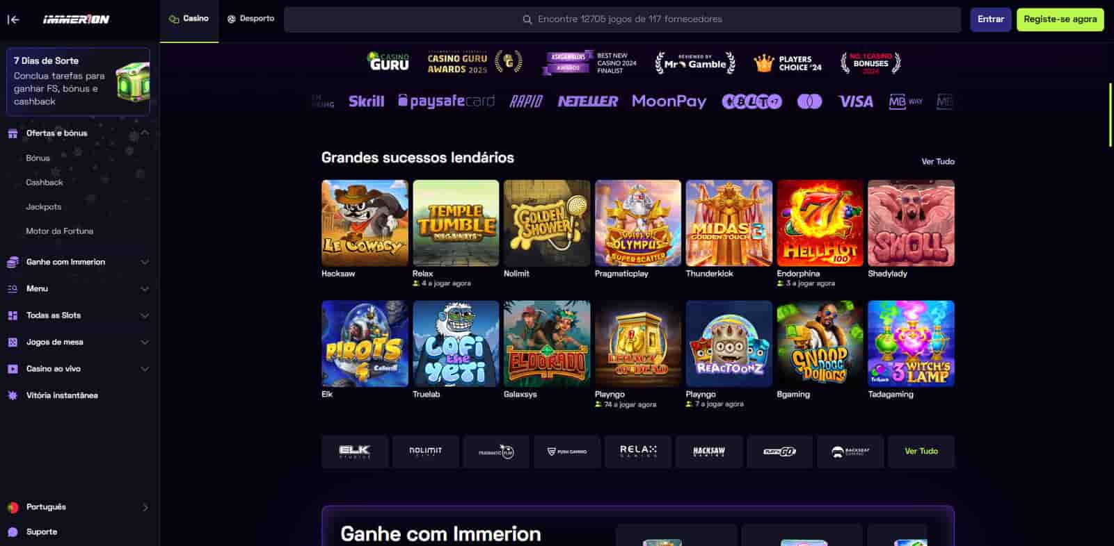 Os bónus são uma parte central para novos utilizadores e também para quem joga com frequência. No Immerion, o destaque costuma ir para o pacote de boas vindas por depósitos, com percentagens e rodadas grátis associadas. Pode existir mais do que uma opção de entrada, por exemplo um caminho para depósitos mais altos e outro mais acessível, mas as condições variam por campanha.