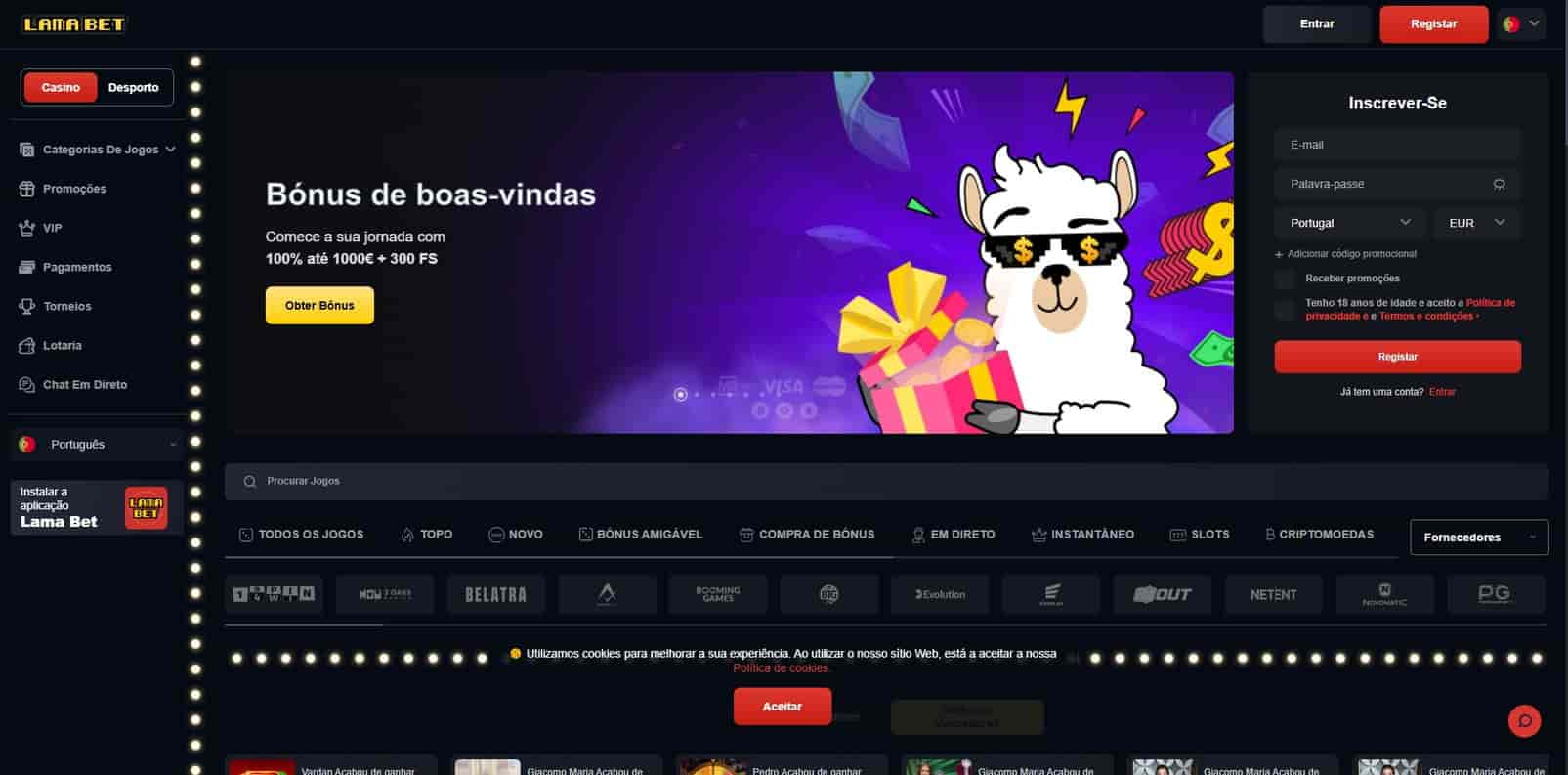 Registo no casino online LamaBet