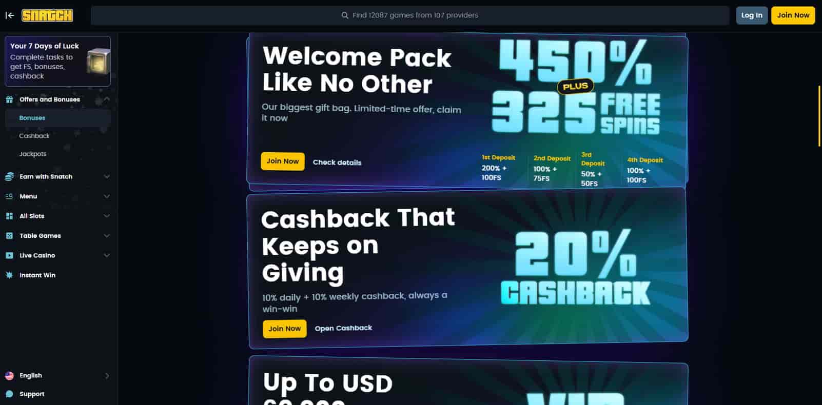 O online casino Snatch costuma trabalhar com pacote de boas-vindas por depósitos, rodadas grátis em slots selecionadas e campanhas de recarga. Em períodos específicos, pode haver cashback semanal e missões dentro de uma área de promoções, além de torneios. Como o app Snatch para jogar a dinheiro é onde o jogador activa ofertas, é importante abrir cada promoção e ler: prazo, jogos elegíveis, aposta mínima e wagering.